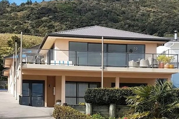 This family house is located directly on the harbourside boasting wraparound decks offering amazing views of McLeod Bay, Mount Manaia, and Mount Albury. There are 4 bedrooms : three inside the house with a large bathroom, and a private cabin off the deck with it's own ensuite bathroom and private garden deck overlooking the bay. Living rooms are large and beautifully decorated to a relaxed resort-style atmosphere, opening out onto the massive wraparound deck.