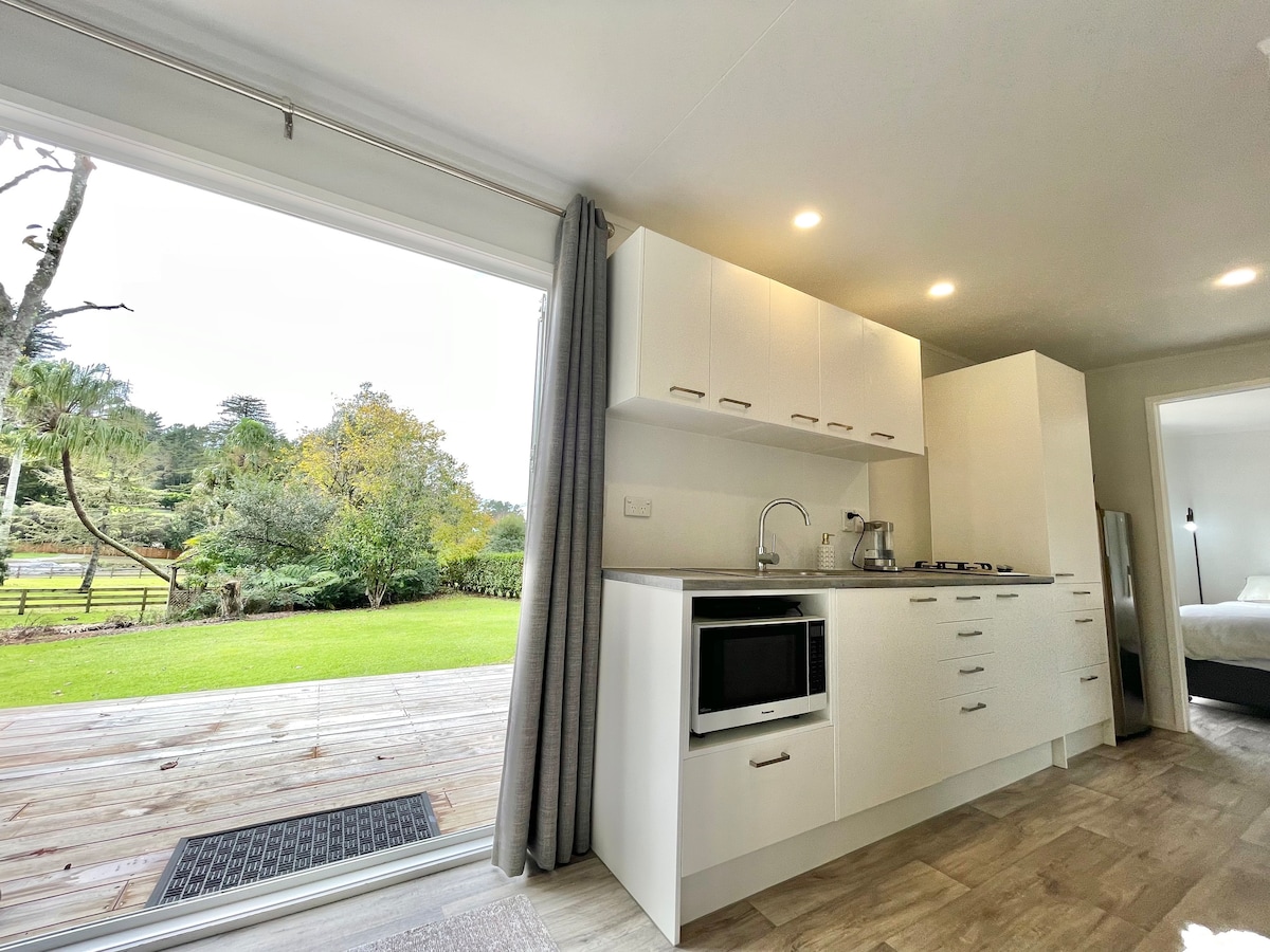 Studio Selah is set in a private peaceful setting overlooking the estuary that flows out to Parua Bay. Consisting of a combined kitchenette, dining, living area with queen sized bed and a separate bathroom. Relax on the deck area or kayak or paddle-board out to the bay. Studio Selah is in an ideal location to explore the Whangarei Heads many beautiful beaches and walks. It’s 5 mins drive to Parua Bay Village which has a 4 Square and a couple of cafe’s and is 2 minutes walk to the PB Tavern.