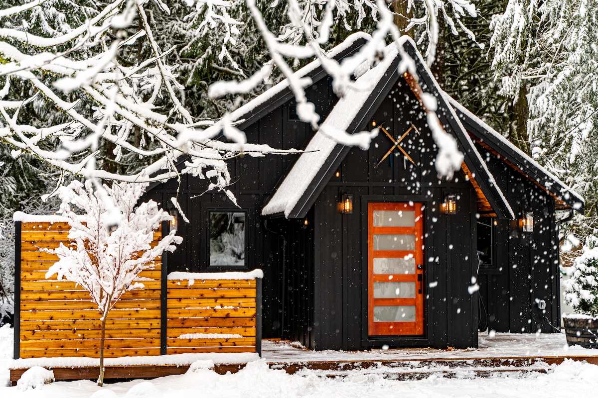 贝克山冰川滑雪小屋|热水浴缸、电动汽车、火坑