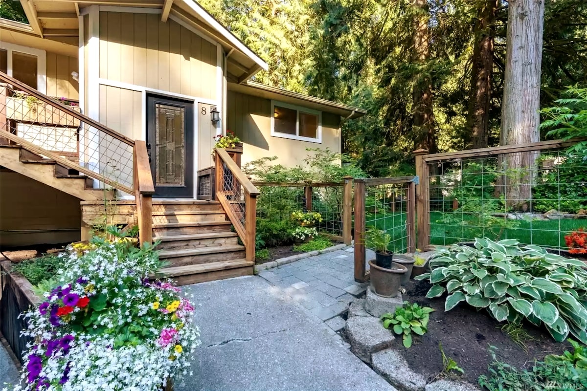 Feel like you’re in your own hideaway, as you live secluded in the trees. Leave your cares behind and enjoy the peace and quiet of nature in our spacious and unique cabin “tree home." Scenic balconies, hiking trails and Lake Whatcom are minutes from your front door! Whether it’s staying in to relax or hitting up the Stimpson Reserve down the street, you will find our cabin the perfect place for families or traveling couples to find relaxation and refuge. We’d love to host you soon!