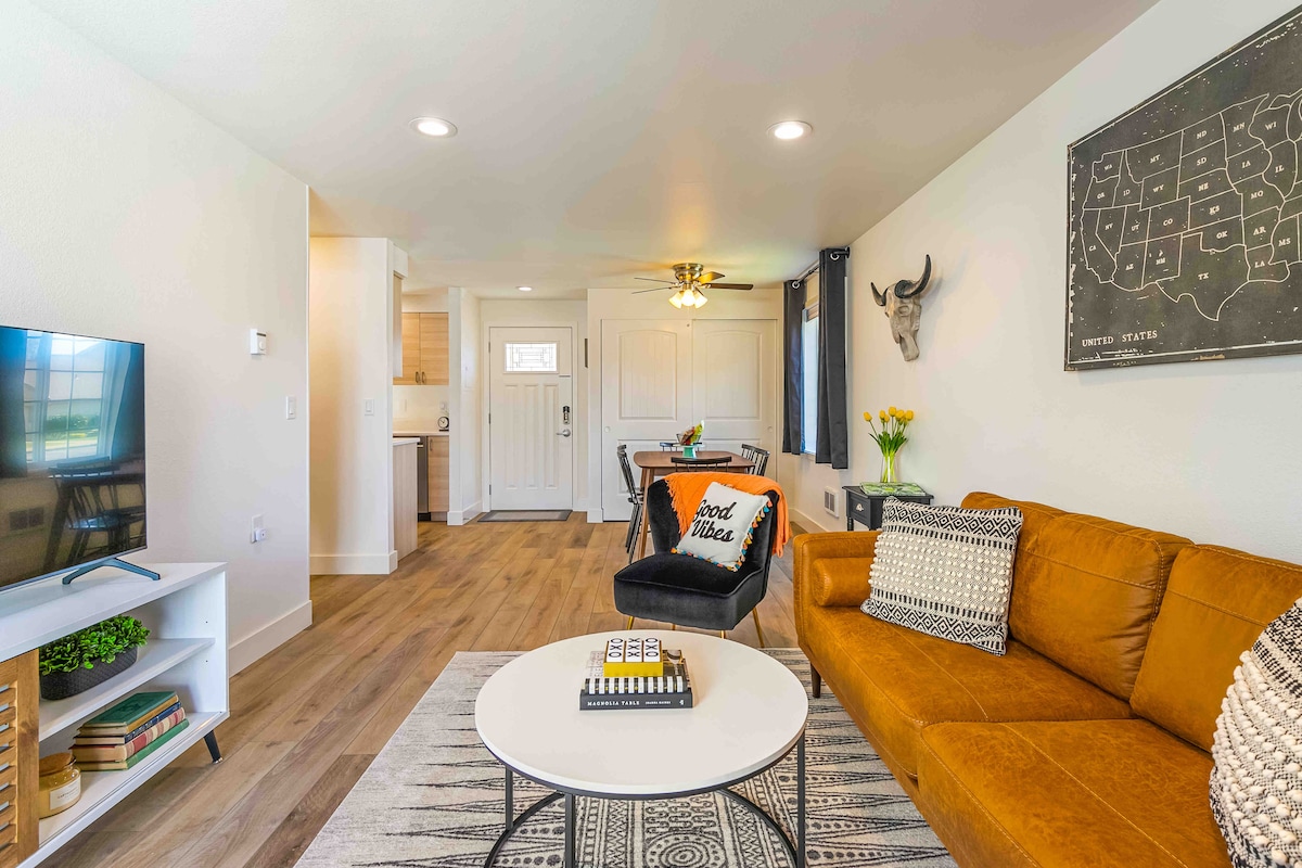 This is the downstairs apartment of a beautiful restored home in the Lettered Streets of Bellingham. The freshly remodeled 2 bedroom / 1 bath apartment is just blocks from all the great spots of downtown. Within a 10-20 minute walk, access the best restaurants, breweries, shows, galleries and farmers markets in Bellingham! Both bedrooms have comfortable, King beds. With the vintage decor, yet comforts of a brand new kitchen and bath, you'll have the perfect getaway spot!