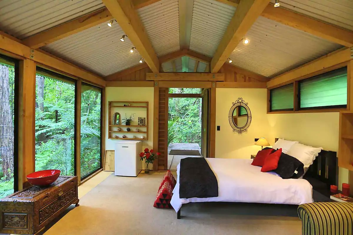 Beautiful romantic bush chalet surrounded by mature Kauri trees and native birds. Private & peaceful with deck overlooking bush 24km (15 miles) from Auckland airport, 18km (11 miles) to city centre/CBD