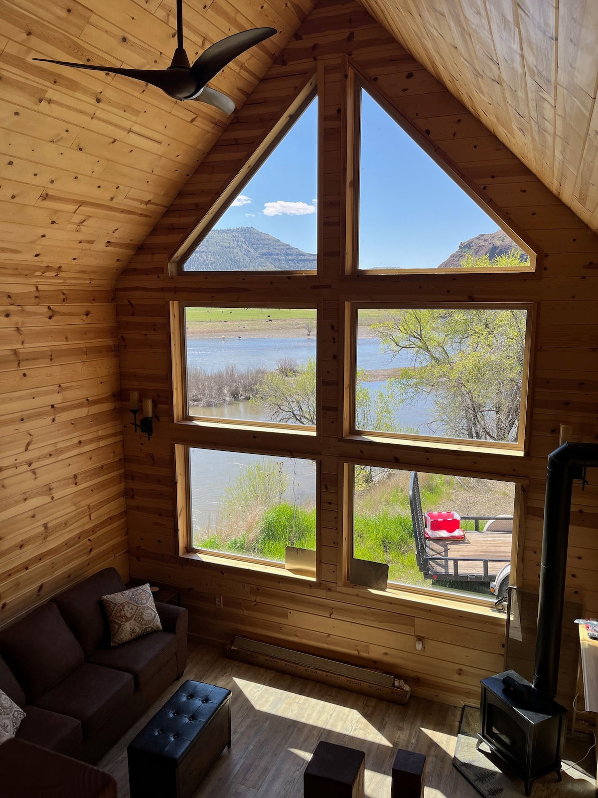 Welcome to your peaceful and unique custom cabin on the John Day River in Spray, Oregon. Come to relax or play in Eastern Oregon on your next get away. This cabin is custom built with fir and pine. It can comfortably sleep 5 people. A queen bed and single bed located in the upstairs loft. A queen sofa sleeper with memory foam mattress. This cabin has a full kitchen, washer and dryer, walk in tile shower, gas fireplace, deck with bbq, and outdoor covered sitting area. With amazing river view!