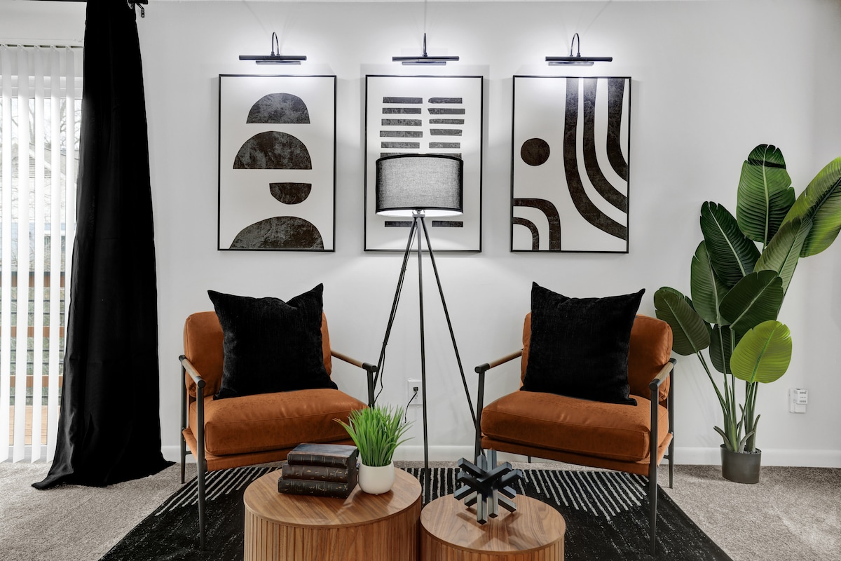 Our second home is a mix of mid-century modern and "cabin in the woods." It sits on 2 heavily wooded acres and backs up to a mountainside with rock outcroppings. The main living area (living room, dining area, and kitchen) is raised about 4 steps, and the bedroom and bath areas are on the main level. There is one large bathroom with a shower. There is an electric fireplace surrounded by ledge stone in front of the u-shaped built-in sofa. There is abundant reading material & 2 TV's.