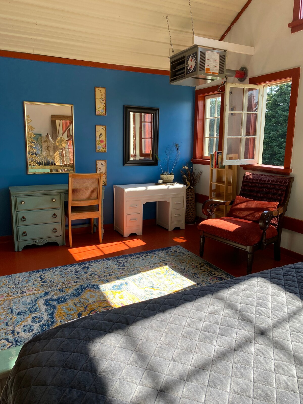 Enjoy the entire third floor of a historic barn in Arlington. Gorgeous views of the Cascade mountains from the floor to ceiling windows, comfortable lodge style accommodations, separate bunkbeds as well as a comfortable queen sized bed. Simple bathroom with shower and kitchenette area for basic food prep. Perfect for small gatherings, and now considering small weddings with venue fee. Early check in and late check out available for additional fee..$25 per hour via prior arrangement.