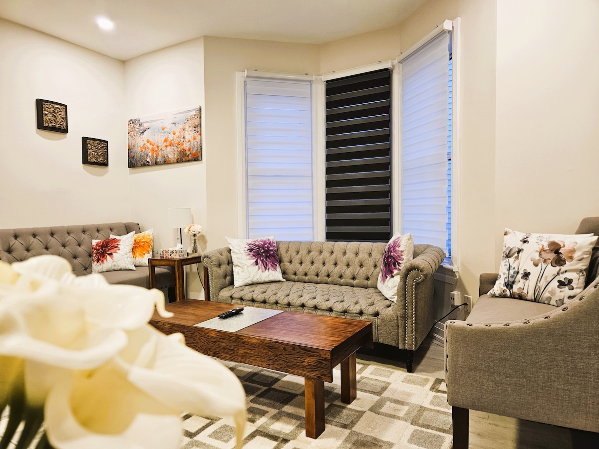 🇨🇦 Licence from the city L-VR-0146: ◆ Having a licence means it has passed all the strict inspections such as fire & occupancy inspections from the city. My place is safe and trustworthy. Welcome to Modern Suite(1F); spacious 800sqft, Balcony in the backyard with string lights, self check-in, free on-site parking for 2 vehicles, 2 bedrooms, full kitchen, laundry, A/C, LG LED Smart TV, Netflix etc. The location is a 5-minute walk from WEGO Bus, NF Bus Terminal and GO train station.