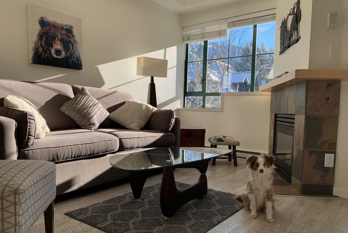 现代惠斯勒村1卧室带热水浴缸/烧烤!