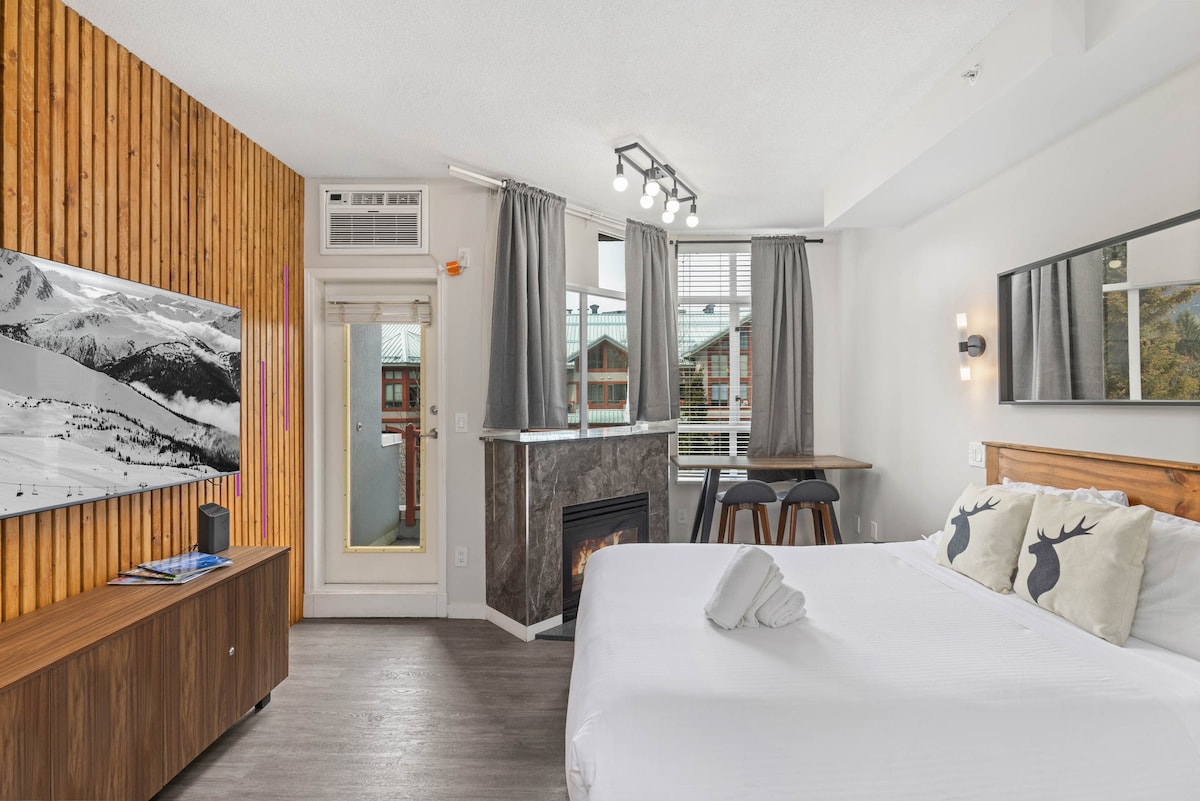 PERKS OF THE LOCATION: - Ski in/Ski out (Snow level dependent) - 12 minute walk to Whistler Village - Quiet location - Walking distance to beautiful trails like Lost Lake PERKS OF SPACE: - Heated pool, hot tub, sauna, & gym on site - King size bed with luxury duvet & pillows - Lots of natural light with views of Blackcomb Mountain - Cozy space with gas fireplace - Patio for outdoor space - Ski & bike storage BC STR Registration #: H103944046