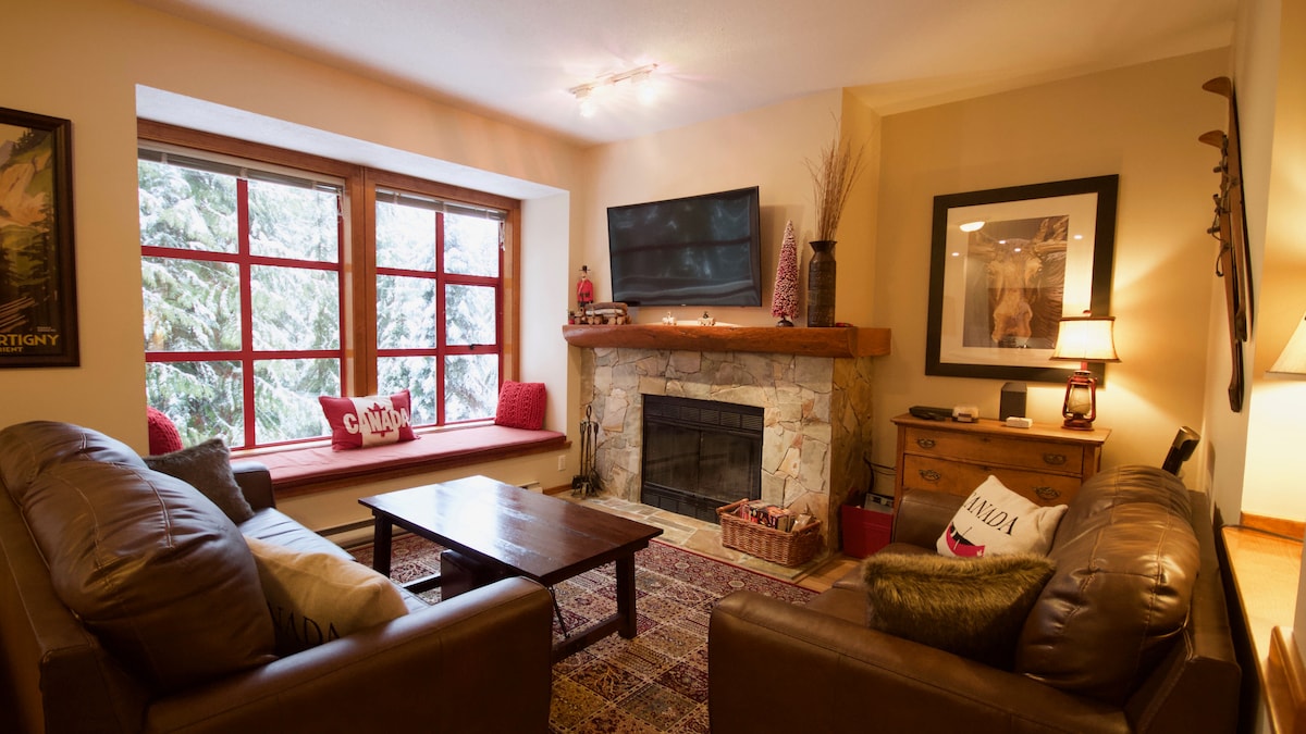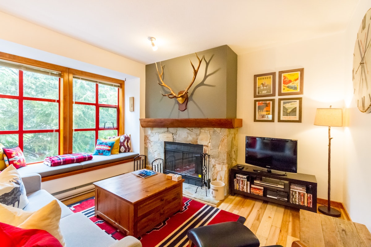 位于惠斯勒村(Whistler Village)的迷人双卧室联排别墅。
