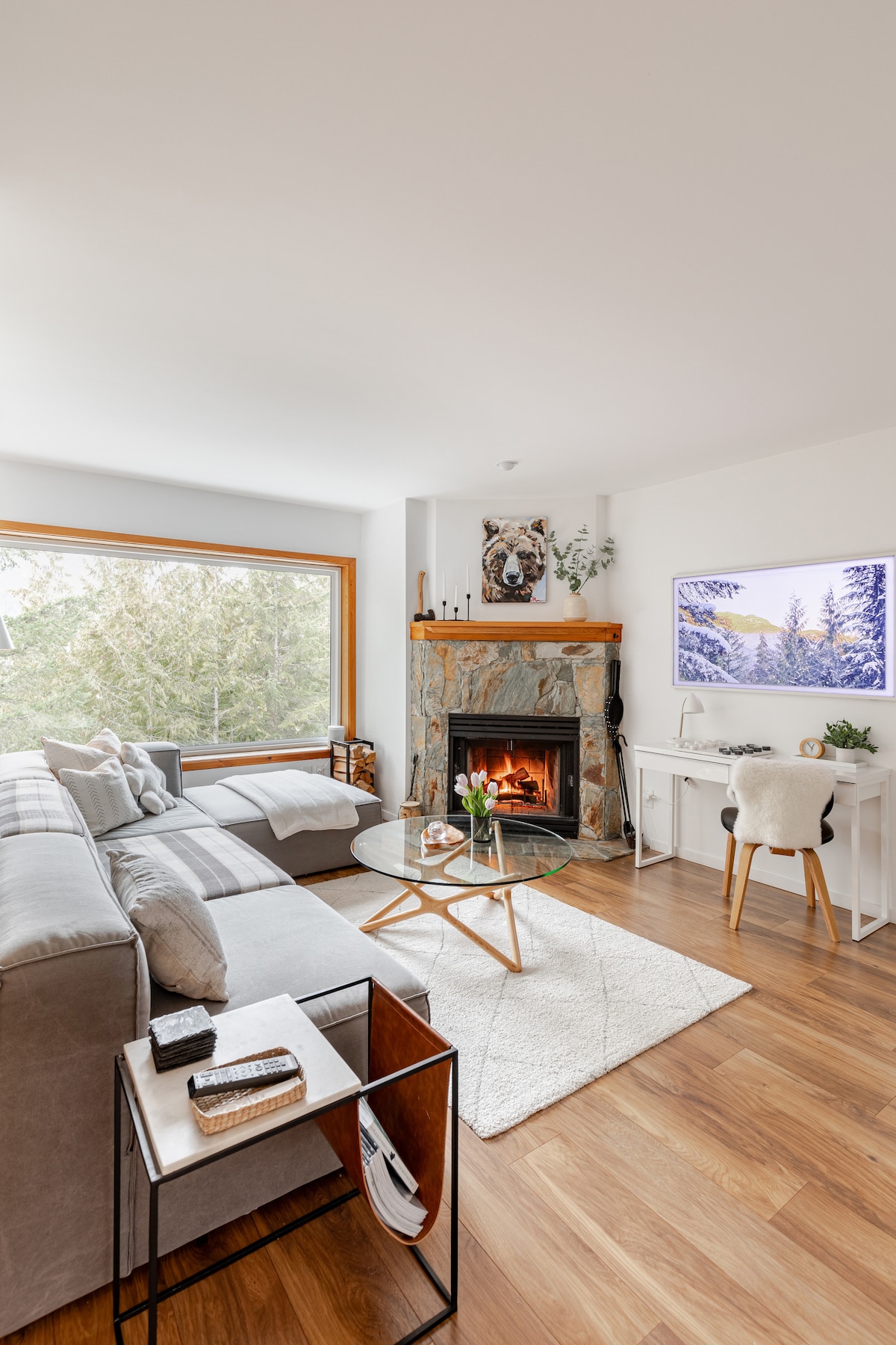 A cozy, mid-century inspired mountain retreat in Whistler, BC. PERKS OF THE LOCATION: ◦ 3 min walk from new gondola ◦ 5 min drive to Whistler Village ◦ Steps from some of the best shops/restaurants in Whistler ◦ Easy access to the highway PERKS OF THE SPACE: ◦ A trendy, cozy, midcentury modern interior ◦ Luxury duvet and pillows ◦ Electric fireplace ◦ High quality furnishings in a newly renovated space ◦ Unique vintage pieces throughout ◦ Record player ◦ Lots of natural light