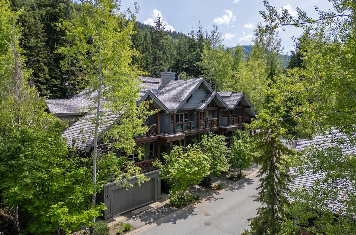 Come find yourself in the Whistler 'Treehouse'. Spectacular views of Alpha Lake and the Tantalus Range, Indigenous Douglas Fir wood salvaged from the Stanley Park storm give this place it's name. Stylish, essential AC throughout, open concept living area, 3 bedrooms, gas fire, 2 parking spots & tons of storage make this rare home the ideal place to adventure or unwind. The 6-minute stroll to the Creekside Gondola literally puts the mountains, forests and trails at your doorstep.
