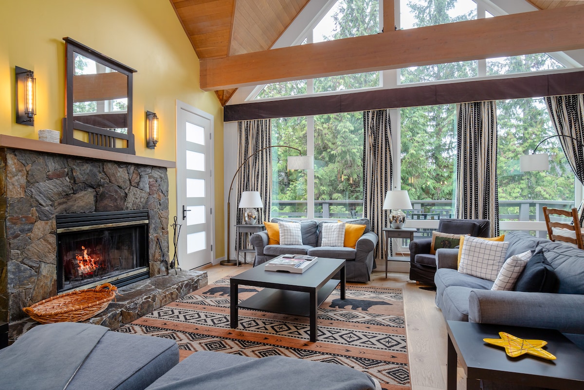 This fully renovated 4-Bedroom/3.5-Bath luxury home sleeps 11 and is perched right above Whistler Village. Watch the Blackcomb gondola pass by from your private hot tub. It is less than a 5-minute walk to the village, and a true ski-in/ski-out green ski run provides access to both Blackcomb and Whistler Gondolas. The home is nestled in trees to provide privacy & ski hill access simultaneously without being far away from restaurants & attractions. Providing a truly luxurious mountain escape!
