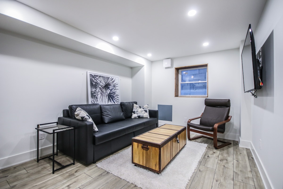 NO SHARING, this separate, well-appointed, one-bedroom basement apartment offers a bright and stylish space perfect for relaxing after a day of exploring. Close to parks, local dining, and convenient transit options, it’s ideal for both short and extended stays. Enjoy a comfortable bedroom, your self-serve breakfast, and easy access to all the area has to offer. Perfect for solo travellers, couples, or business visitors looking for a quiet retreat with modern amenities.