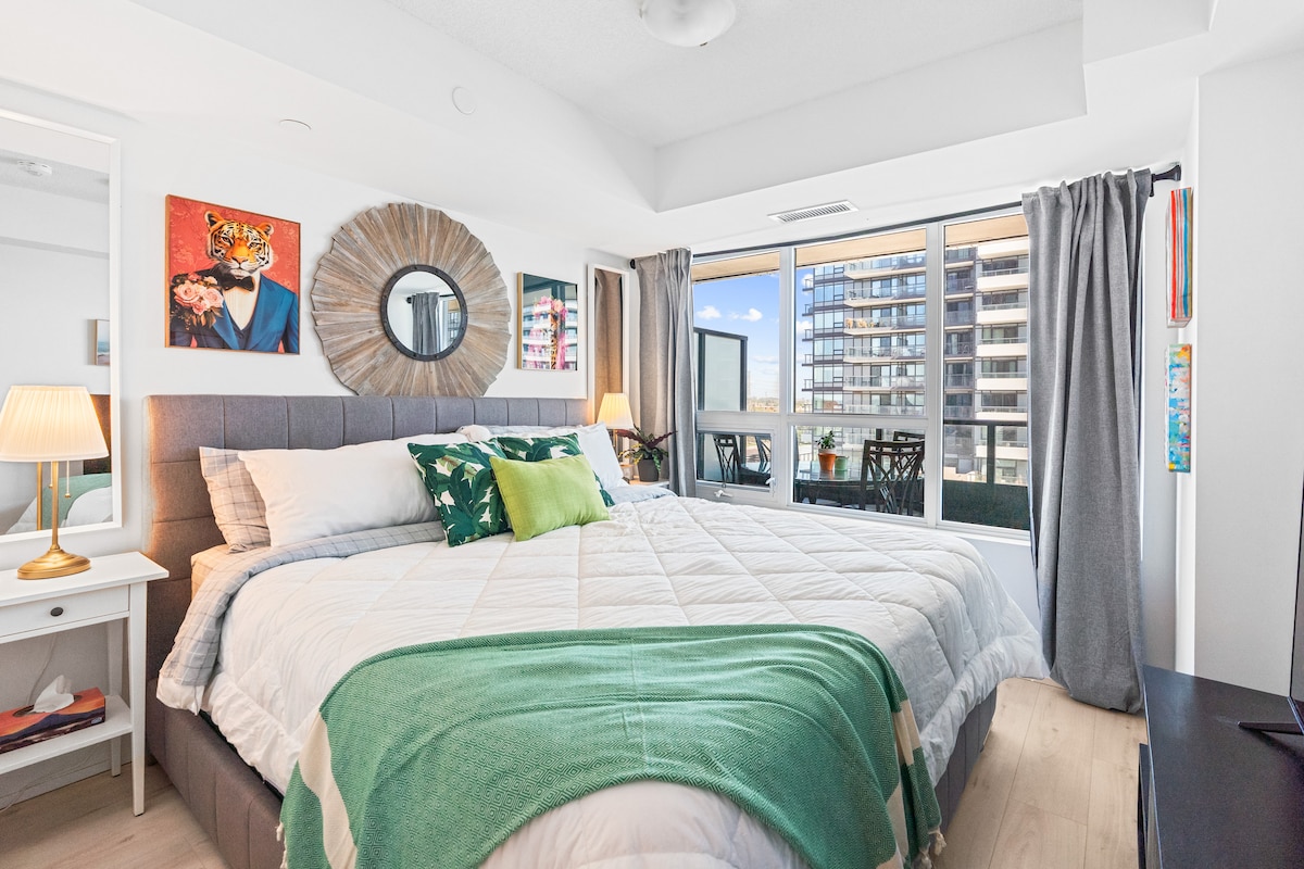 Work hard, relax harder in this modern 2BR condo perfect for families, business, or leisure. Sleeps 6 with 3 separate sleeping areas, including a queen pull-out sofa. Fully stocked for children, with indoor & outdoor dining for 6. Enjoy 2 smart 55” TVs, fast WiFi, and stunning rooftop pool & skyline views. 🚆 Just 23 minutes to Toronto via GO Station, with endless dining nearby — the ideal mix of comfort and convenience. Book today and enjoy!