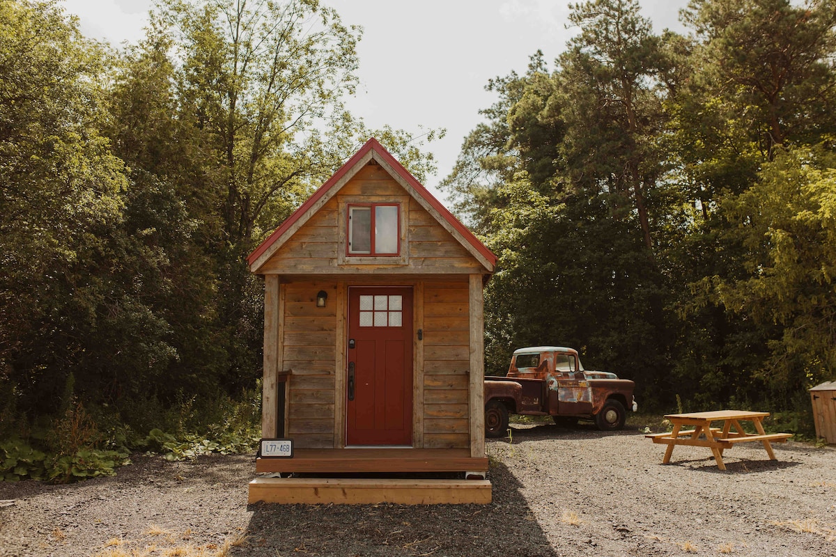 Discover the charm of our Tiny House! Parked beside a scenic farmer's field, this 8x21 ft. tiny house on wheels boasts a whimsical 1959 GMC pickup up front, creating a unique and cozy atmosphere. Enjoy stunning sunsets, tranquil rain nights, and the best of tiny living. Located in Orono, you're close to local attractions. Experience the magic – book your stay now!