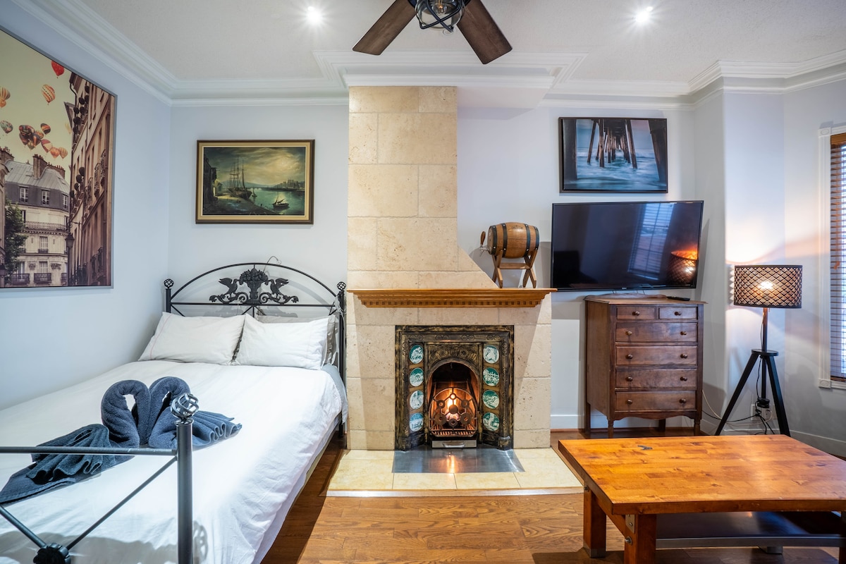 Are you looking for the perfect getaway? 😊 Retreat yourself to a Luxurious, Charming and Modern Suite with a splash of glam.✨ Perfect for couples, families or business trips. Enjoy the Fireplace with a glass of Cabernet Sauvignon🍷Perhaps you would also like to partake in a game of pool on our custom pool table 🎱, or take a hot rainfall shower in a delightful Stone Spa Shower💦. But, most importantly, our place is yours to relax and unwind😊