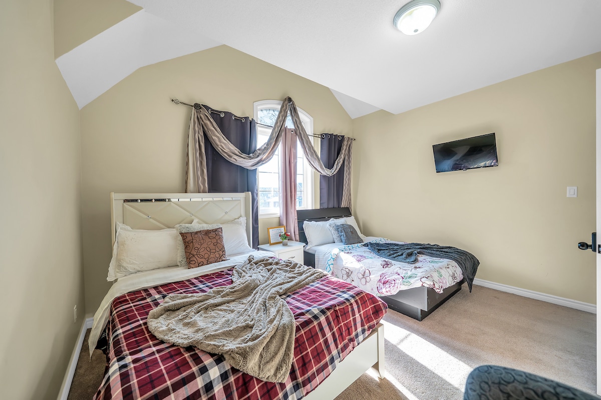Bring your family or team together in this luxurious home! Beautifully refurnished in 2022, including a new hot tub and new hotel-quality mattresses & linens, this 4000 sq. ft house is ideally suited for large families or athletic teams. Featuring a remodeled kitchen w/ gas stove, 7 new beds (3 king), gym, office, smart TVs, 4 parking spaces & fast Wi-Fi. Only 5 minutes from the 401 & Ajax Go Train station, accessing the city is a breeze. Tennis + playground 50 meters away. *3 extra beds avail
