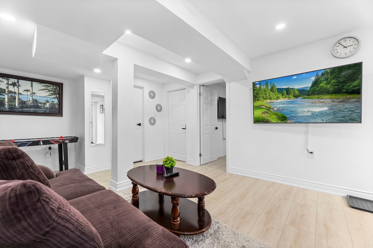 Have fun with the whole family at this stylish place. This space has all the amenities including Free WIFI, Netflix, Laundry, and a full Kitchen. Only 6 minutes drive from highway 401, 10 mins drive from Oshawa Mall, 5 mins drive from down town Whitby, and 5 mins drive from Whitby Entertainment Centrum (Landmark Cinemas and Restaurants, Good Life Gym). Also close by are other kids entertainment places such as, Flying Squirrel, Sky Zone, and Reptilia.