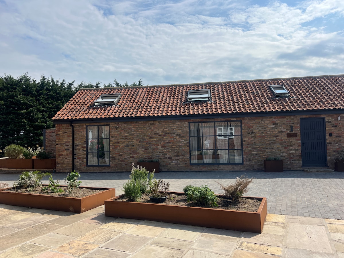 April sale - visit York while it is quieter and enjoy luxury accommodation in a desirable location near York, Harrogate and Castle Howard. Our converted barn in landscaped gardens, has two double bedrooms, the main having cast iron free standing bath. Bedroom 2 has twin single beds. The open plan kitchen and living space is an ideal living area, with another quiet sitting room on the first floor overlooking the gardens, our house being adjacent. We also have a 7kW EV charging point