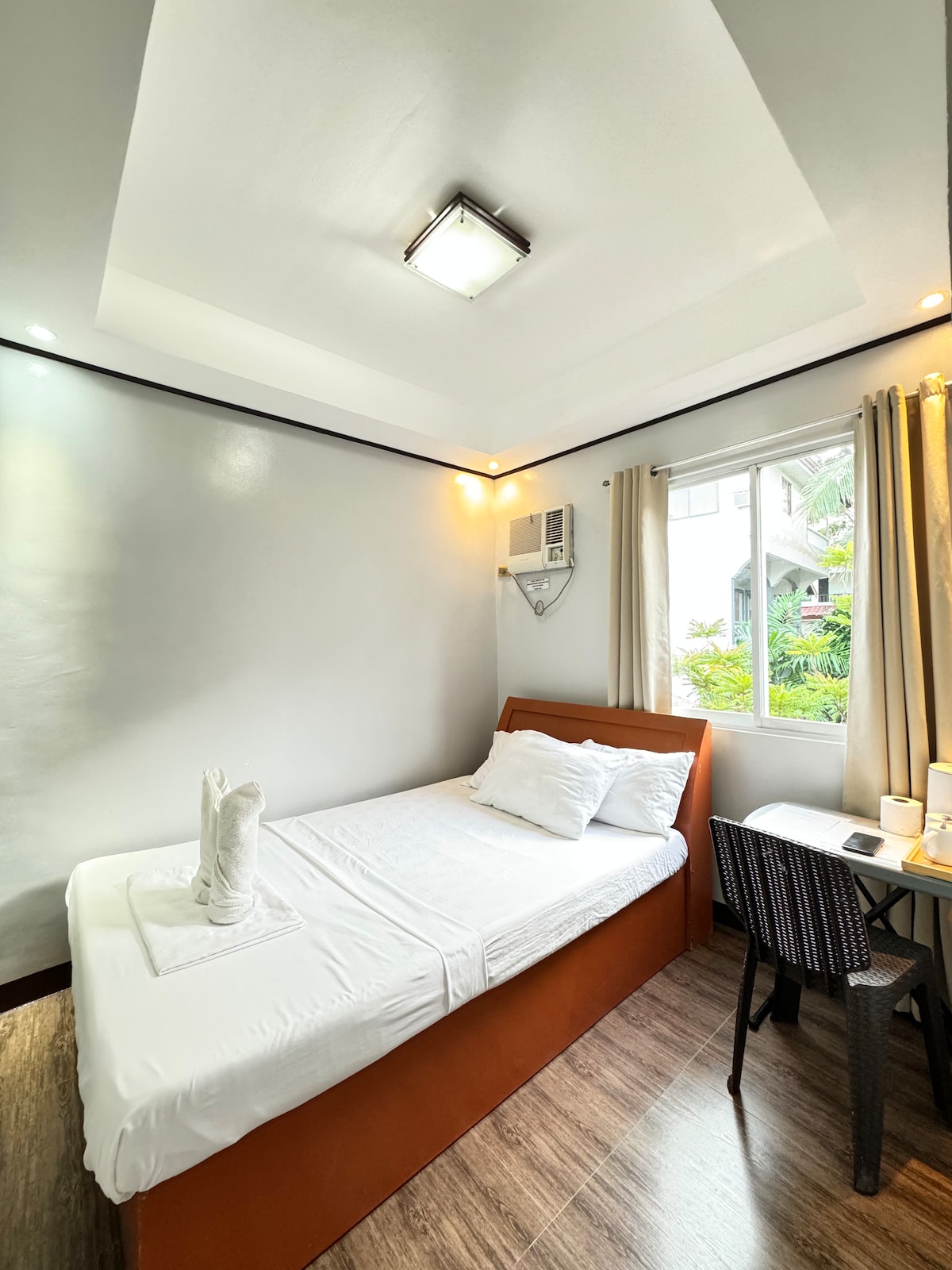 Studio Apartment (12 sq.m in size) is located in the quiet part of Boracay Island. (NOT BEACH FRONT station 1,2,3) Our Unit has all amenities to make your stay comfortable. Free WI-FI - speed upto 25 mbps is provided. Ideal for remote working individuals. 1 full double bed and 1 single bed - can easily accommodate 3 person Air-con, a kitchenette, 32″ smart TV(with NELFLIX), Electric Kettle, Rice Cooker, Mini Ref, Butane Gas Stove (Butane gas not included) It has personal CR with H/C shower