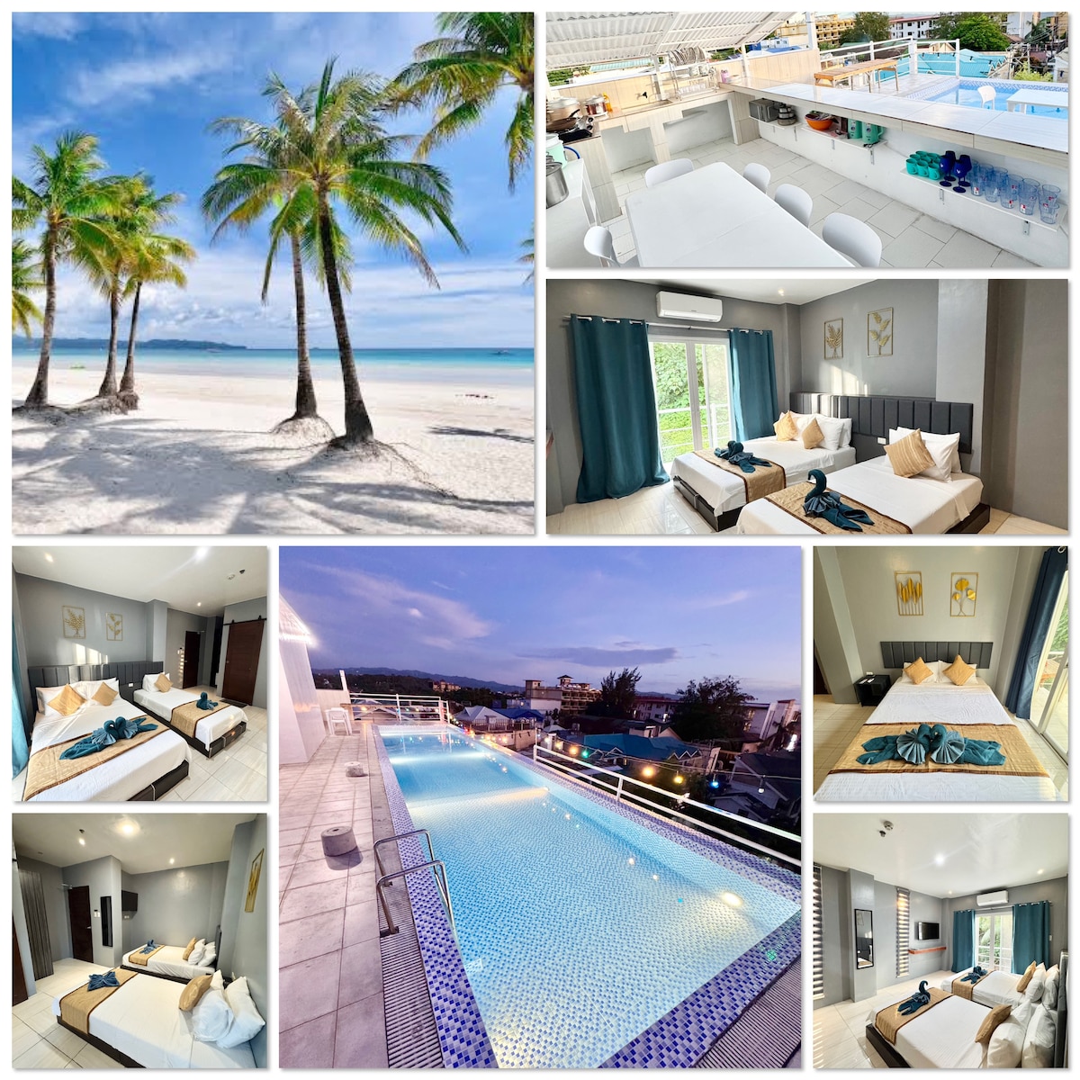 This beachfront hotel situated at Station 3 radiates a laid-back yet chic atmosphere, perfectly positioned to provide stunning views and direct access to the white sandy shore. Framed by towering palm trees, the hotel’s modern façade features a bright white 2 storey building that offer guests a relaxing retreat. We have around 24 newly renovated rooms equipped with smart TVs, ACs, hot and cold shower and Queen sized high quality mattresses.
