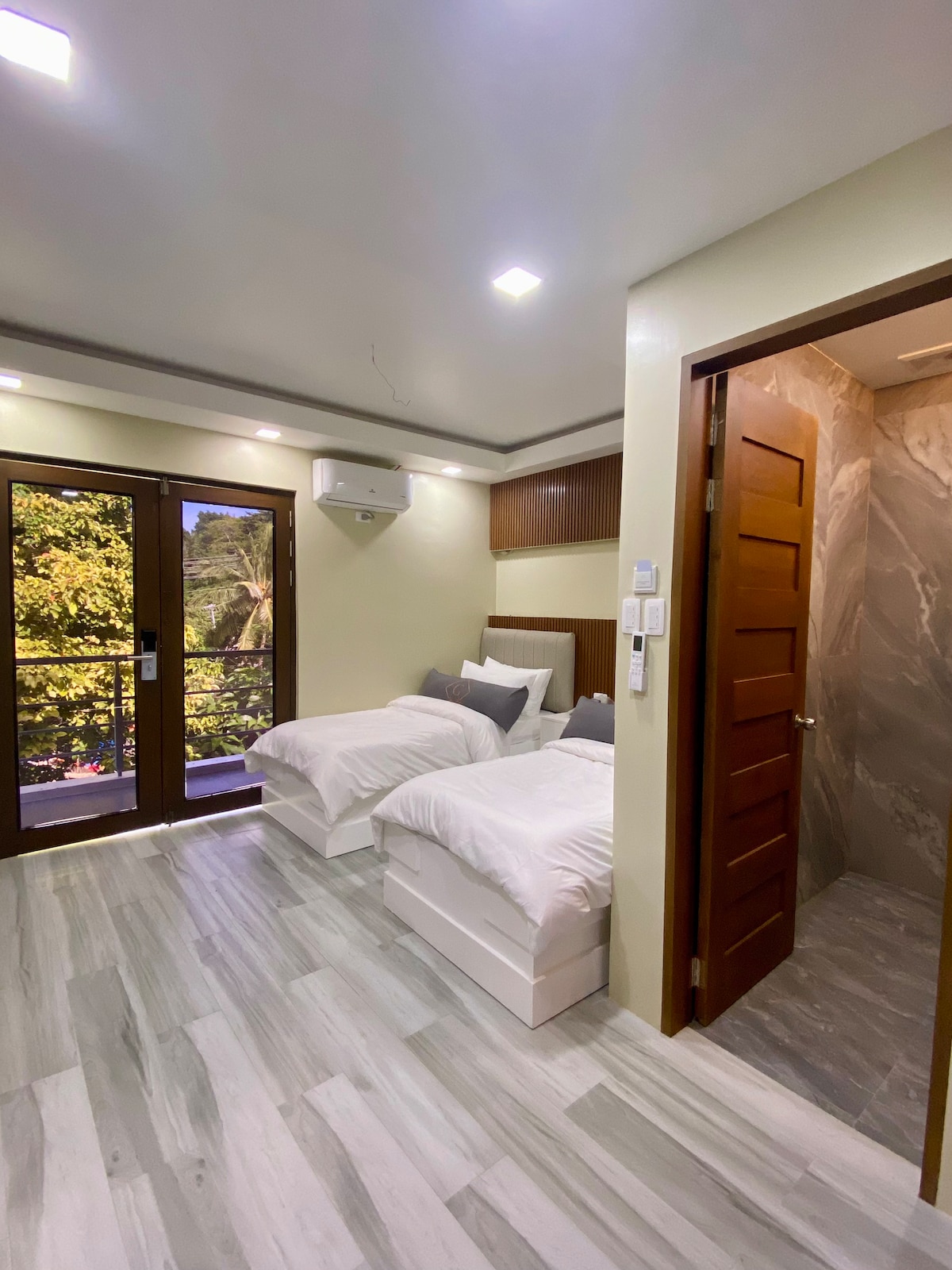 Spacious room – Perfect for 2 Guests This fully equipped unit includes: air conditioning private bathrooms with hot showers terraces Smart projector with access to your own streaming accounts (Netflix, YouTube, etc.) High-speed Wi-Fi Fully furnished kitchen with all essentials (SHARED) Conveniently located: 2 minutes walk to Bulabog Beach 10 minutes walk to D'Mall 12 minutes walk to the famous White Beach 14 minute walk to our partner’s swimming pool—free for our guests