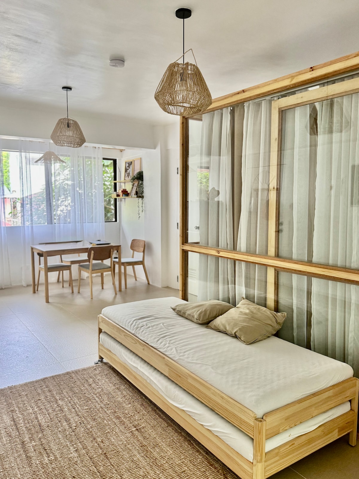 Explore & enjoy the southern part of the island for a laidback & local island atmosphere in Angol Station 3. Our fully furnished 1Bedroom apartment is newly renovated, bright, modern & spacious with a touch of the tropics. A comfortable accommodation for someone traveling alone to a family of four! It’s an easy access to the calm part of white beach within a 1min walk so you can easily enjoy, swim in blue waters & have amazing sunset views.