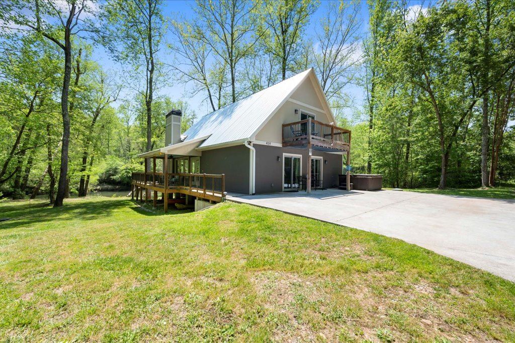 Chalet directly on the Chestatee River. Sleeps 6 adults and 4 children. There are three bedrooms and an open loft with bunk beds. Charcoal grill with picnic table and fire pit. The river is stocked with various trout. 6 person covered hot tub. Within a few miles to local wineries, six miles from downtown Dahlonega and 18 miles from the town Helen. We are not an event facility. Pets accepted with extra fee. Home is powered by a Generac generator. Lumpkin County Short Term Rental #26