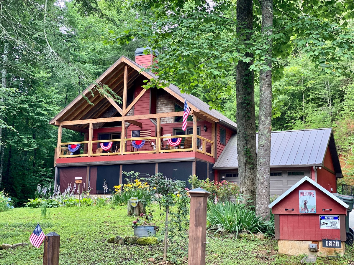 Hänsel Haus- inspired by the Bavarian town of Helen. This charming 2 bed/2 bath with a hot tub boasts brand new stylish bathrooms, appliances and quartz kitchen counters.Just minutes to downtown Helen, Anna Ruby Falls, and wineries & more! Enjoy relaxing on the front porch or grilling on the secluded back deck. At night, cozy up by the indoor fireplace & take in the peace and quiet of nature! Need extra rooms? Family vacation? Ask about our other two cabins within walking distance!