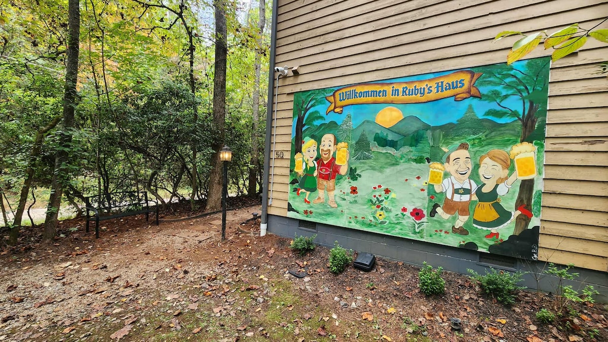 Bärenhütte- inspired by the Bavarian town of Helen and translating to Bear Cabin in German. This cozy cabin is perfectly located minutes to downtown Helen and close to plenty of hiking trails and wineries. Enjoy the peaceful wooded surroundings, covered hot tub to relax in and snuggle up by the fire at night! Planning a family vacation? Ask about our other two cabins within walking distance!