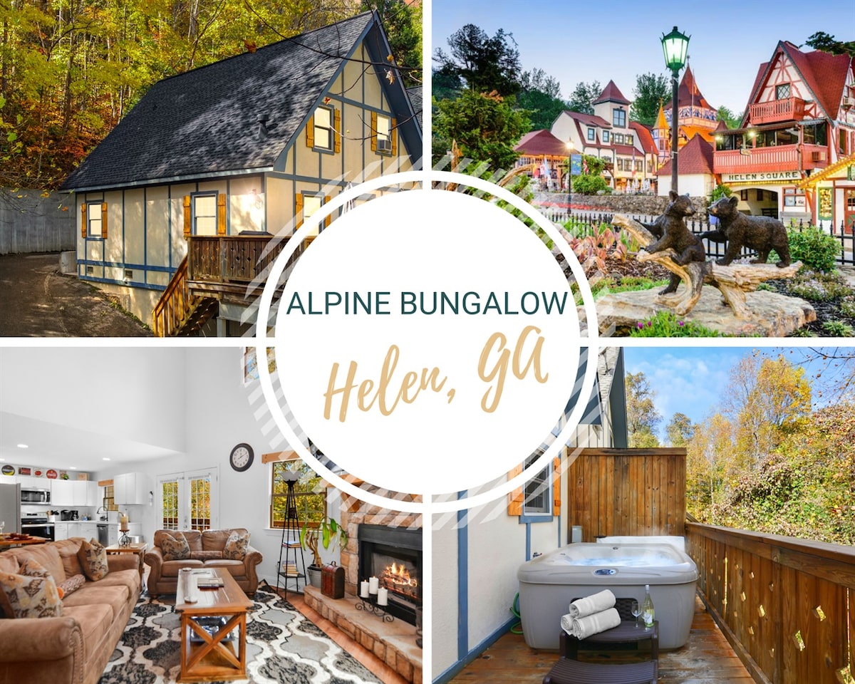 Nestled in the Blue Ridge Mountains, this hidden gem, The Alpine Bungalow, overlooks Helen and is located within walking distance to DT Helen. Our Alpine Bungalow is comfortable, cozy and clean and ready to host up to 8 guests. So if you're coming for tubing, Oktoberfest or Christmas or Summer activities we have the place for you. 4 bedrooms and a hot tub are awaiting you!