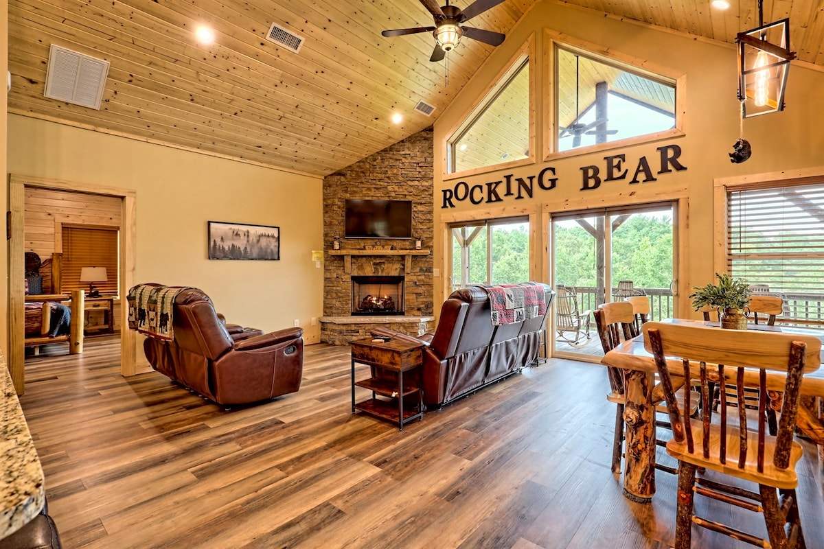 Welcome to The Rocking Bear, a charming cabin perfect for a family or group retreat. Just minutes from Helen, this stunning cabin is destined to become your favorite mountain haven. Whether you're basking in the private hot tub, marveling at mountain views, or engaging in a game of pool, you'll find yourself captivated by the charm of this retreat. Easy Access with Paved Roads ensuring a seamless journey to your getaway and promising an unforgettable stay. 191 FIVE Star Reviews!