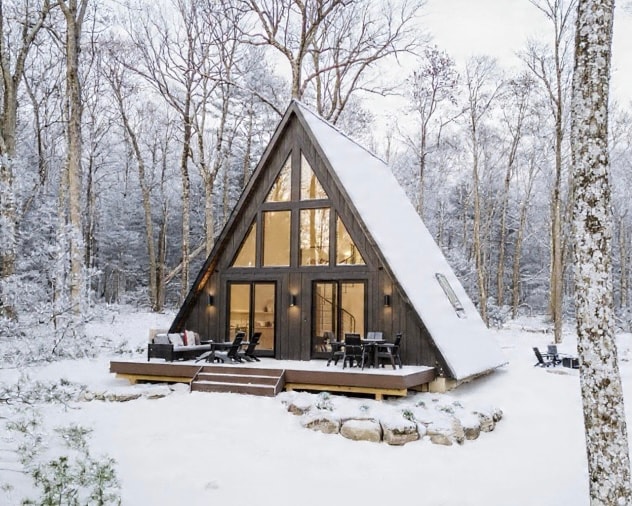卡茨基尔山设计小屋|热水浴缸+桑拿+披萨