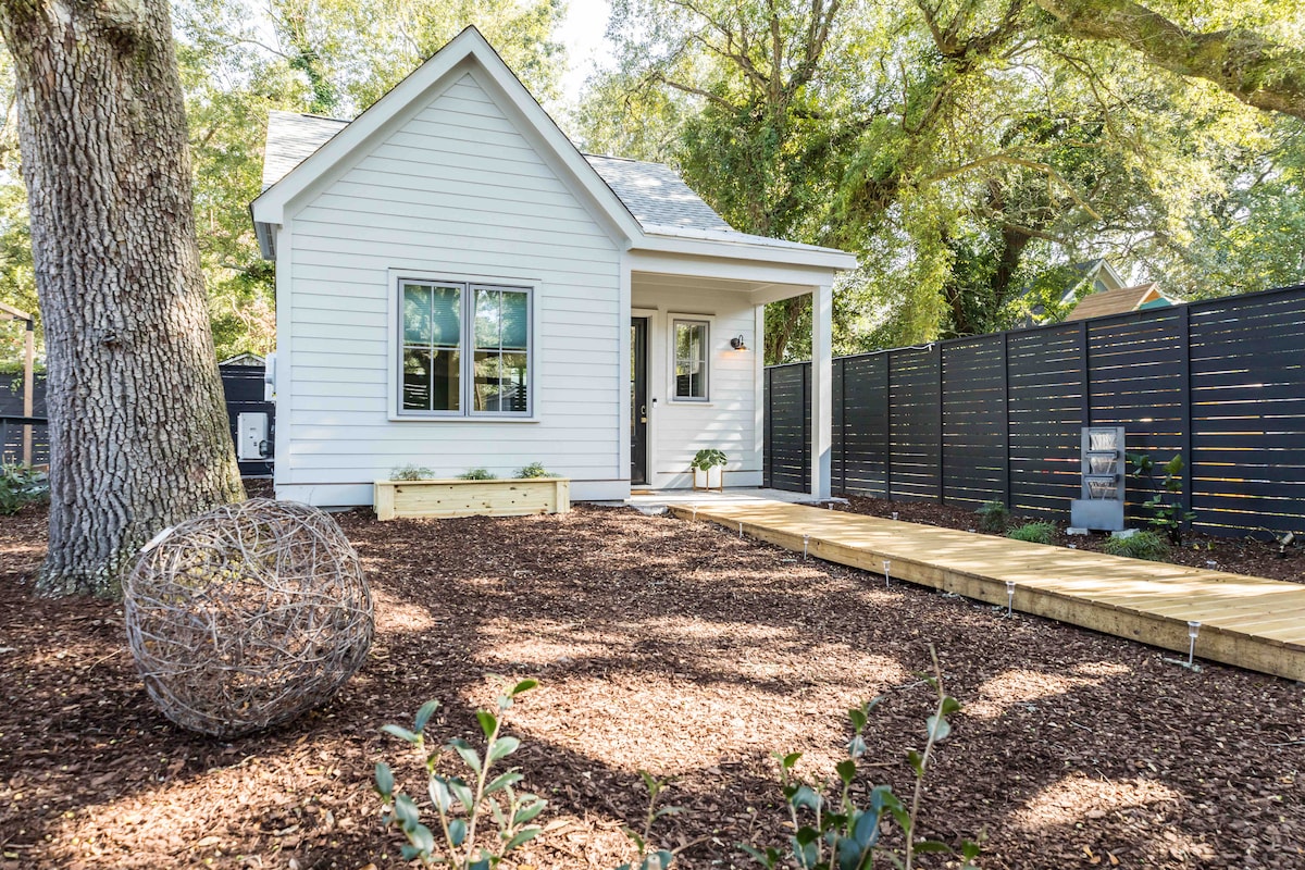 The James is a unique NEW 530 sq ft retro coastal tiny home located in a gorgeous neighborhood on James Island ◡̈ 10 mins to downtown Charleston 12 minutes to Folly Beach Walking distance to restaurants The James sleeps up to 6 people and 2 dogs (NO PET FEE) & boasts a private fenced yard & patio with an outdoor shower and Clawfoot tub! The James is ideal for solo travelers, couples, families, those traveling w/ their dog(s), those w/ limited mobility and groups of friends. #BNB-2023-02