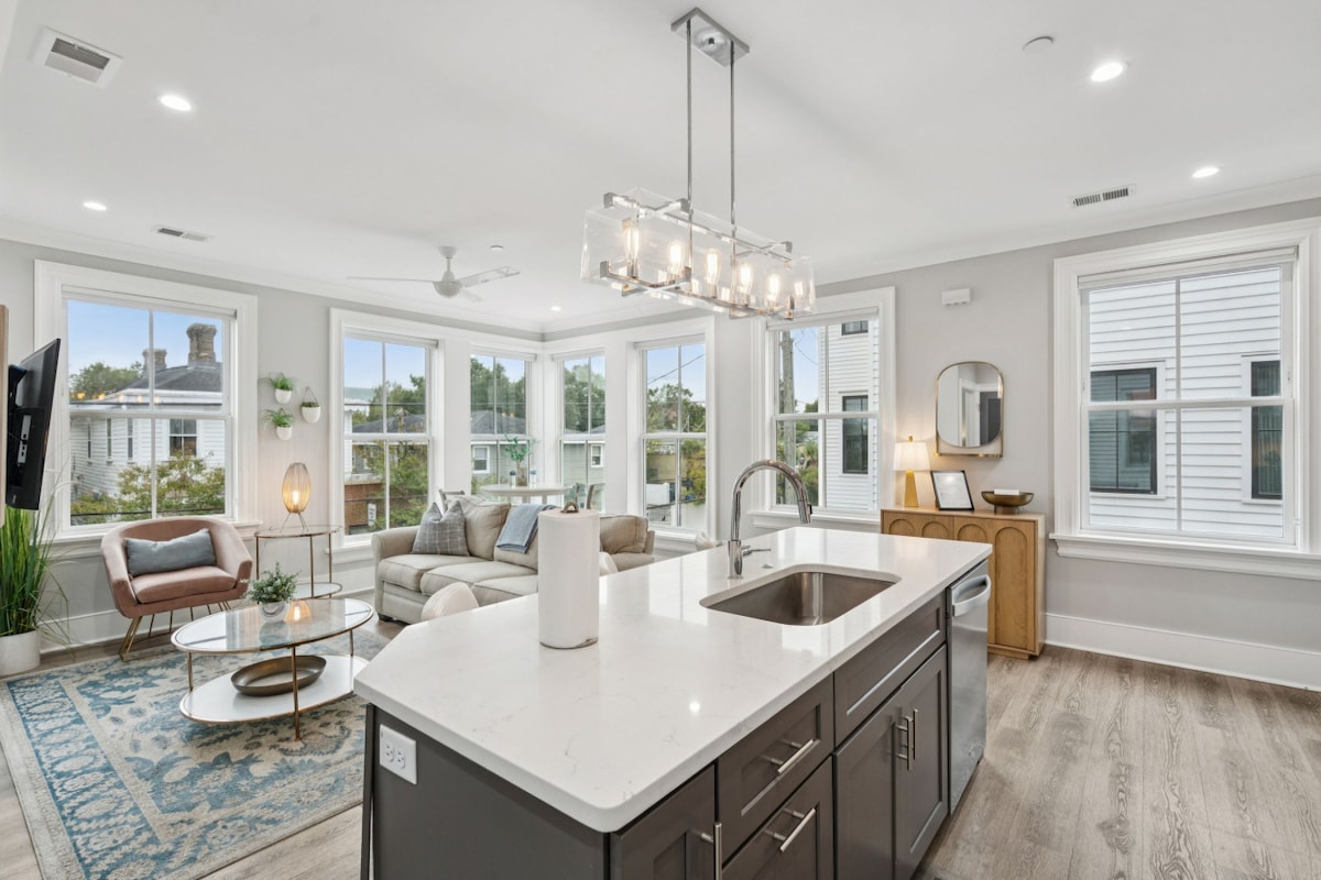 Immerse yourself in Charleston's vibrant culture from this stunning two-bedroom suite, meticulously designed by a professional interior designer. This light-filled haven blends modern comfort with antique charm, boasting beautiful artwork and a curated selection of new and vintage furniture. This designer escape is more than just a place to stay, it's a launching pad for an unforgettable Charleston experience.