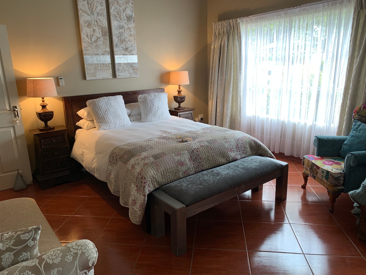 • Summerview Farmhouse offers self-catering for up to 8 guests in 4 bedrooms. The Farmhouse is a private dwelling on an Estate, with its own gardens and very large pool. • Rooms are spacious, indeed enormous, and well-appointed. • Free Wifi • Big flatscreen SMART TV with DSTV Explorer. • Gourmet ice maker • Guests are free to roam the farm. • Meals are not included in the rate but guests are welcome to enjoy their meals at the River Café restaurant at an additional cost.
