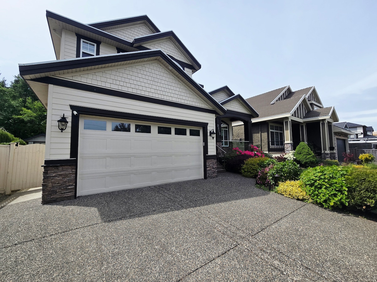 Beautiful Brand New Executive Home for Vacation Rentals Experience the perfect blend of luxury and nature in this stunning home located by Burke Mountain. 6 bedrooms 5.5 bathrooms 2 kitchens Living room, dining room, and family room Huge backyard with a sundeck patio 4 parking spaces plus free street parking Driving Distance from the House: YVR Airport: 50-60 minutes Downtown Vancouver: 45 minutes Coquitlam Centre & Fremont Village:15 minutes