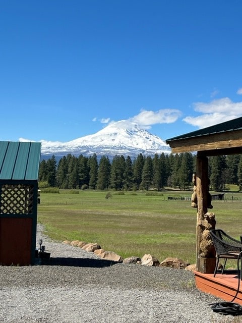 This beautiful one room cabin is nestled up against Conboy Wildlife Refuge near Glenwood, WA and provides a stunning view of Mt Adams, especially from the hot tub or your comfy bed. Deer, turkeys, and herds of elk are commonplace in this nature's wonderland. Enjoy an outdoor shower after a hike, bike ride, or a day in the woods!