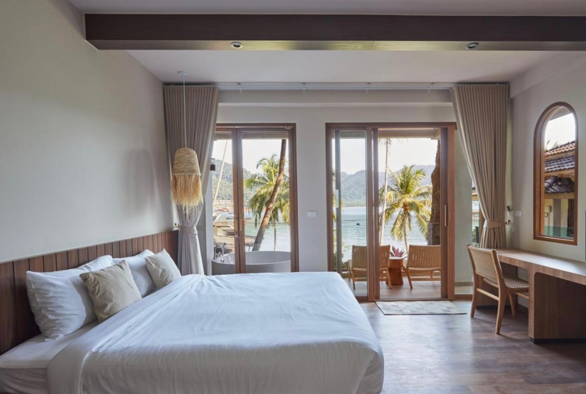 Welcome to our Seafront Suite Villa in Koh Chang! Enjoy stunning ocean views from your private sunbed and unwind in the luxurious bathtub. This elegant villa features fine wood furnishings, air conditioning, and a spacious relaxing patio. It's the ideal retreat for a serene getaway, located right on the beach. Book now for an unforgettable stay!