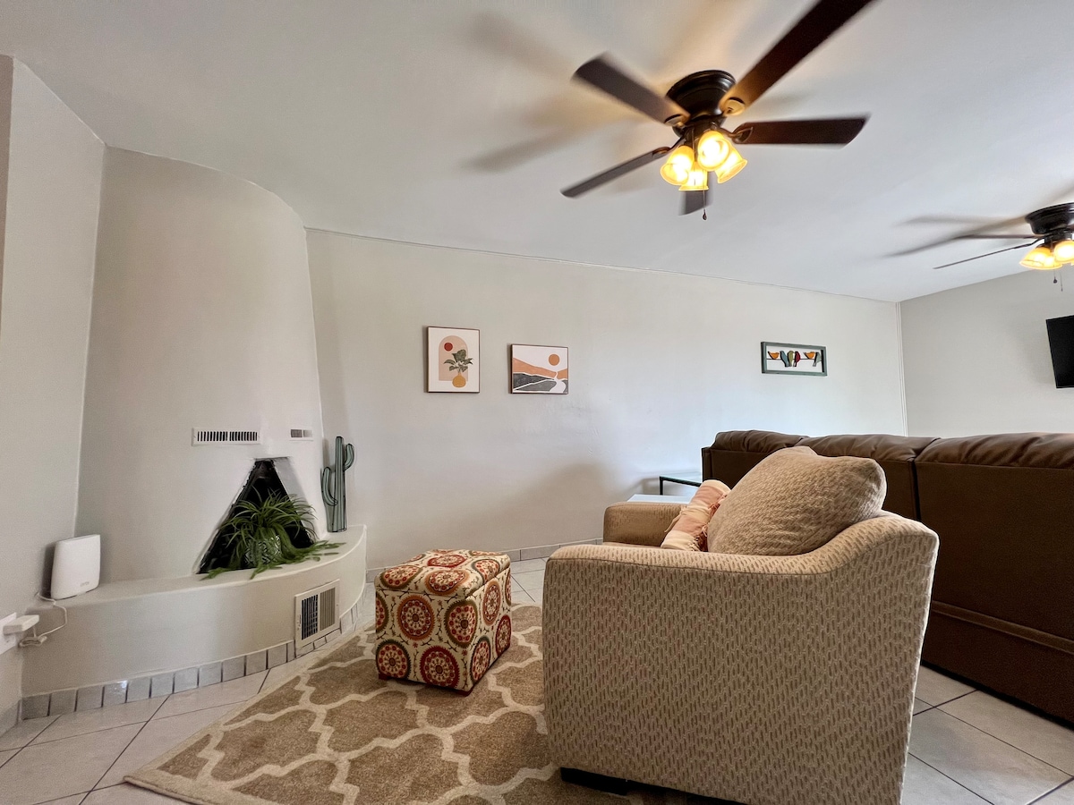 Cozy casita just steps from Old Mesilla’s historic plaza and coffee shops. Unwind in your private courtyard with a hot tub, or curl up by the fireplace inside the guesthouse. A kitchenette adds comfort for longer stays. Mesilla Bosque State Park by the Rio Grande is only 4 minutes by car—or a short bike ride—perfect for birdwatching, sunsets, and peaceful walks. The ideal spot for a romantic getaway or quiet retreat.