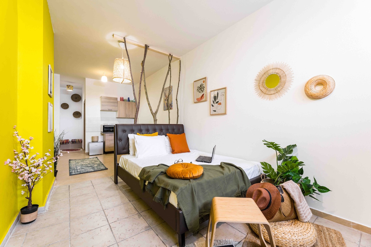 -Prime location on side street of Aristotelous Square -Few steps from the waterfront -Easy walking to all venues/sites -Modern clean design with ample natural lighting -Easy keyless access -Room darkening blinds -Inverter A/C Unit heat/cold -High quality mattress & pillows -Hotel style bathroom -Professionally cleaned -Perfect for a couple, lone traveller, friends & family -Possible outside noise from nearby bars -Offers all amenities needed for a comfortable, relaxing stay in this vibrant city!
