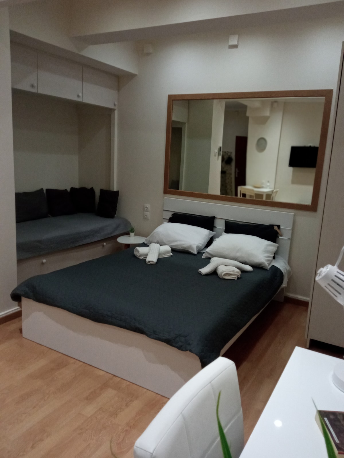 Studio with all the comforts with the possibility of comfortably hosting up to 2 guests in the same space. The access to and from the city is direct (centre of Thessaloniki, Thessaloniki International Fair - TEF, White Tower, Port, Bus Stations - KTEL, OSE, Museums, Theatres, Cinemas, Shops, etc.). It is also served by a number of city buses for various destinations such as e.g. to Macedonia Airport, to Macedonia KTEL, OSE etc. with routes of a few minutes per hour.