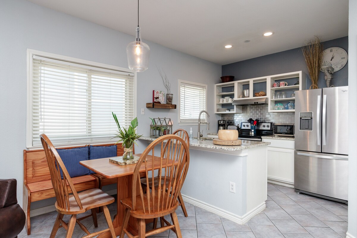 Enjoy a stylish experience at this centrally-located place, The Texas Pearl. Here you will find a King, accompanied by two Queens topped with 10 inch memory foam mattresses. State of the art sound system that boasts (4) height in ceiling speakers, the award winning Sonos Arc sound bar, (2) Sonos Play 5's, and (2) subwoofers. Connected for your viewing is the LG OLED Evo. We're sure you'll enjoy your theater like experience here. Coffee bar with a drip machine, pod machine and espresso machine.