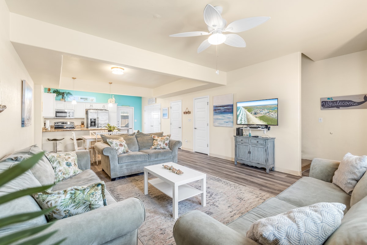 Blue Haven is a nicely renovated “End” Unit offering a private balcony with ocean and waterfront views. Beautifully furnished throughout Includes new queen size sofa sleeper with upgraded (No spring) mattress Featuring Smart TV's, fully equipped kitchen, washer/dryer, beach necessities (beach chairs, umbrella, sand toys and cooler). Guest will have access to a wealth of amenities including community pool heated in the winter. Come unwind at 'Blue Haven' for your next vacation retreat!