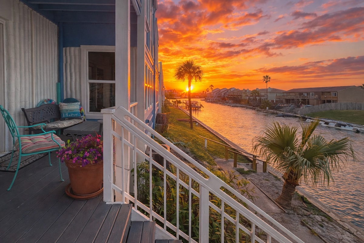 Canal view | Ground Floor | Patio | Fishing | Pool | Washer/Dryer | 1 bdr/1 ba | Pets Welcome* Relax & enjoy some awesome sunsets in a beachy condo! Beautiful canal is out your backdoor with the Gulf beach 2 blocks away. King bed, full and twin sleeper sofa provided. Fish and crab off the bulkhead and dock using the green fishing light. On-site pool out your front door. Downtown Corpus is a 25 minute drive away. *Dogs UNDER 35 lbs welcome, Breed restrictions apply, preapproval required*