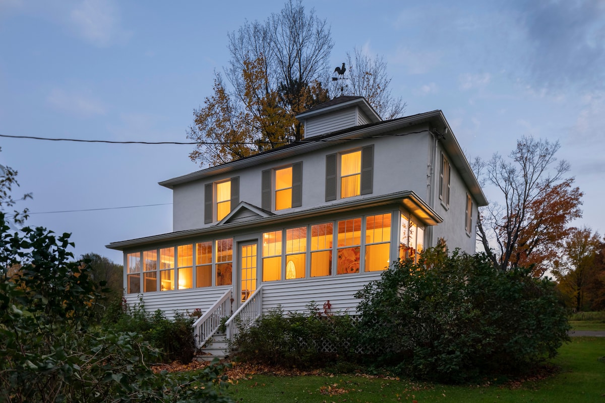 Turn of the century 4 bedroom 2 bath charming farmhouse, that has been lovingly restored. Set in Kimball WI, this farmhouse sits on 80 acres of rolling pastures and old growth hardwoods. Experience the peace and serenity when you stay in this spacious, renovated four-square farmhouse located three miles west of Hurley. Enjoy watching the wildlife activity in the apple orchard as you sip your morning coffee on the beautiful front porch.