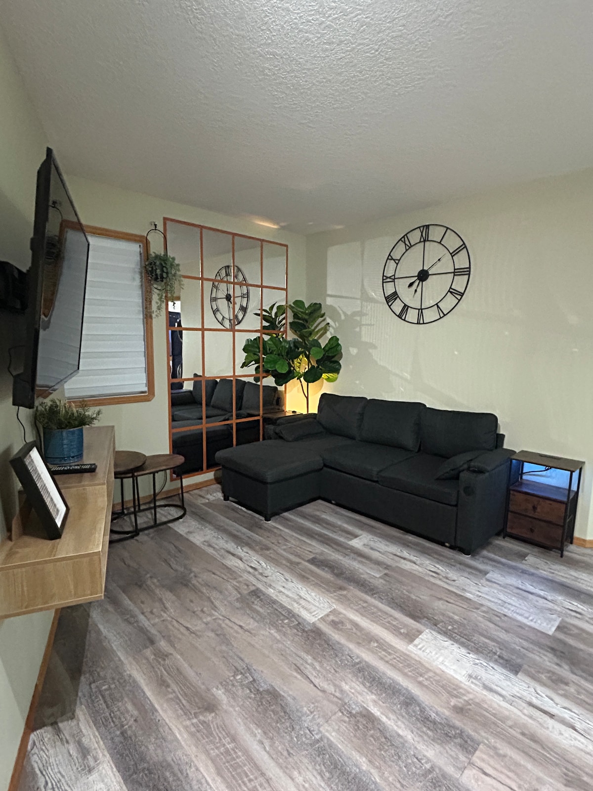 Relax and unwind in our cozy one-bedroom basement suite, with on demand hot water, a private back entrance and enough parking to fit a bus. The inviting living area has two couches and a full kitchen. Perfect for lounging after a long day of riding, exploring, or driving.Start the day well rested and ready for the day ahead. Long term stays and short term stays are welcome. Smoker on the deck for your convenience. Also includes free wifi! long stays and workers welcome, oilfield friendly family!