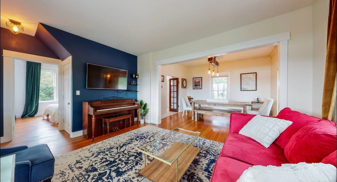 Take first pick of Glacier National Park when you stay at River Haus — the CLOSEST home to the park entrance! It's unforgettable staying: ✔ Steps from Glacier Park ✔ On famous Going-to-the-Sun Rd ✔ In West Glacier Village PLUS you'll relax and recharge with riverfront views, abundant natural sunlight, and warm mid-century style. —HAUS PERKS— Location, location, location Walk to Everything Firepit + BBQ King Beds Full Kitchen SONOS Fast Wifi Huge Backyard Perfect for Families Fly-Fishing