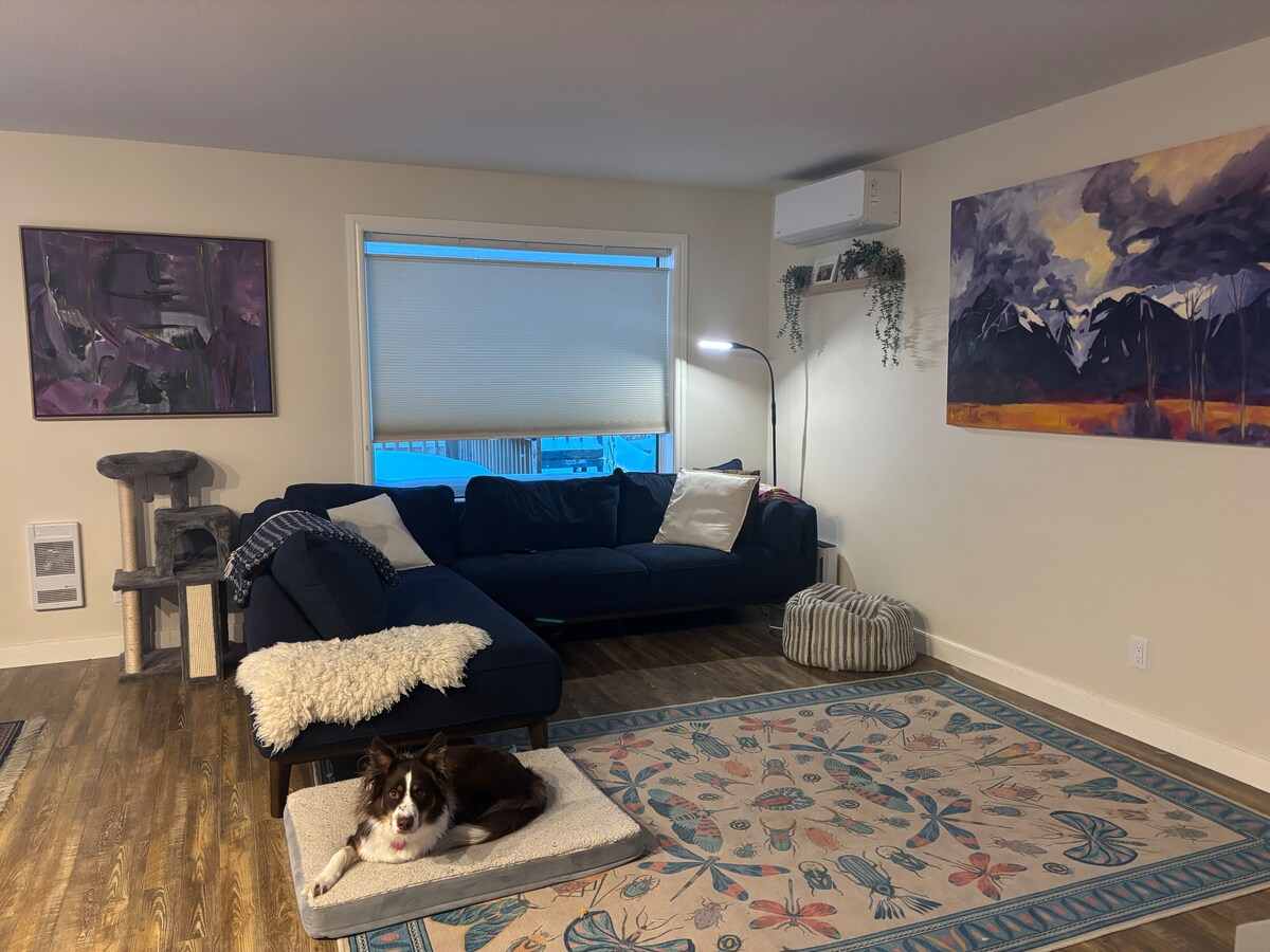 Self-contained suite in a quiet neighbourhood with full kitchen, washer/drier and bath. Close to hiking & biking trails in Copper Ridge. Nearby grocery store & pub. 10 min drive to downtown. Sofa-bed in living room with propane fireplace. Pets welcome. Private driveway. BBQ, Patio with fire table and fenced kennel. Fenced backyard, and Hot Tub are available with notice.