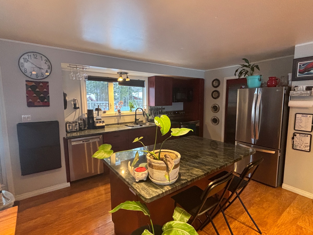 Our bright and cozy home puts you right in the heart of the action while still in a quiet neighbourhood. Just 1 km from the Canada Games Centre and Mt. Mac ski trails, and only a quick 5-minute drive (or a refreshing 20-minute stroll) to downtown Whitehorse. With plenty of bedrooms, comfy hangout spaces, and a fully fenced backyard, it’s the perfect spot to unwind, explore, and make great memories.